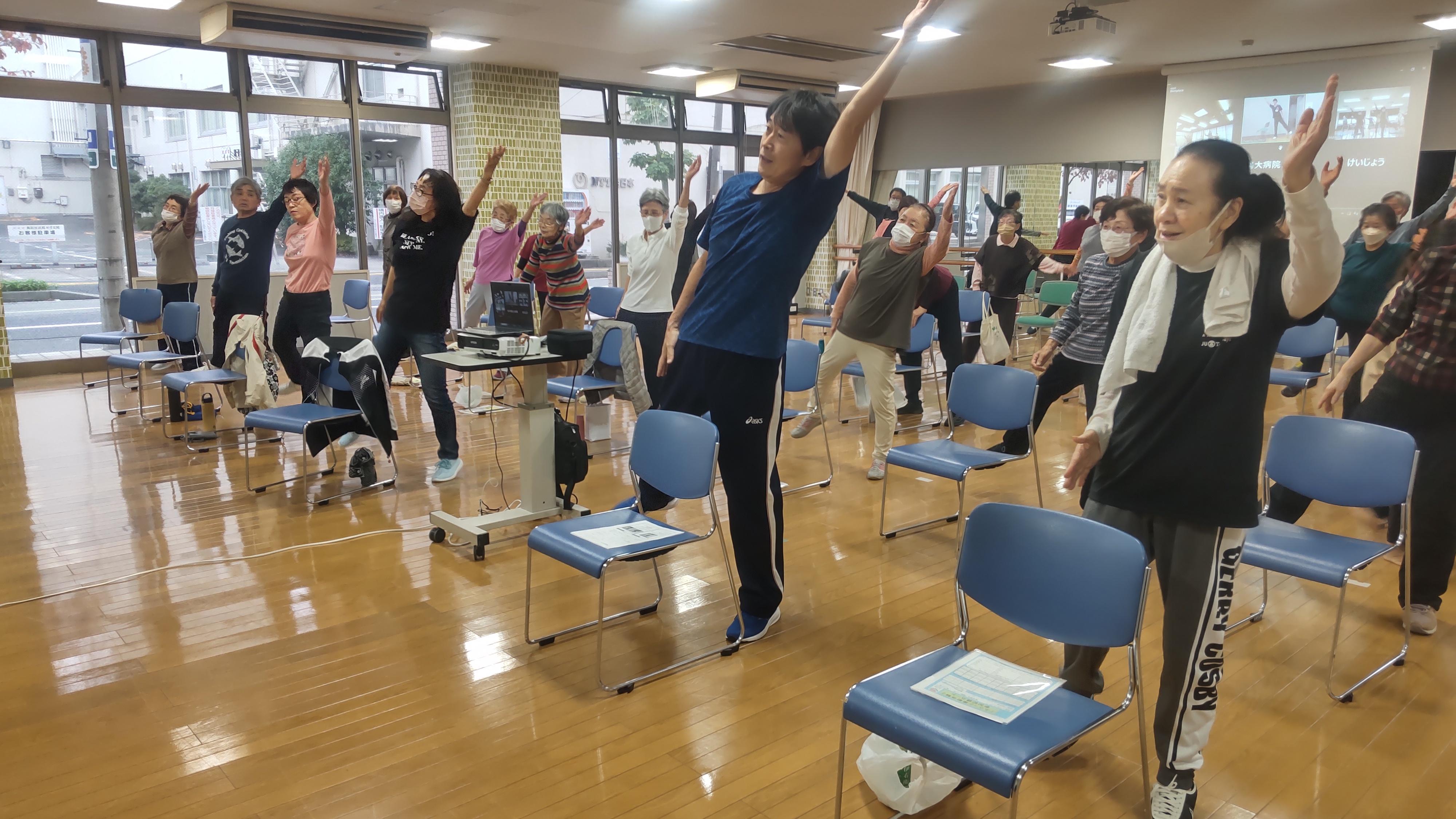 「ふらっと運動体験」の様子(11月15 日)※前列右から2番目青いウェアが宇田川アナ